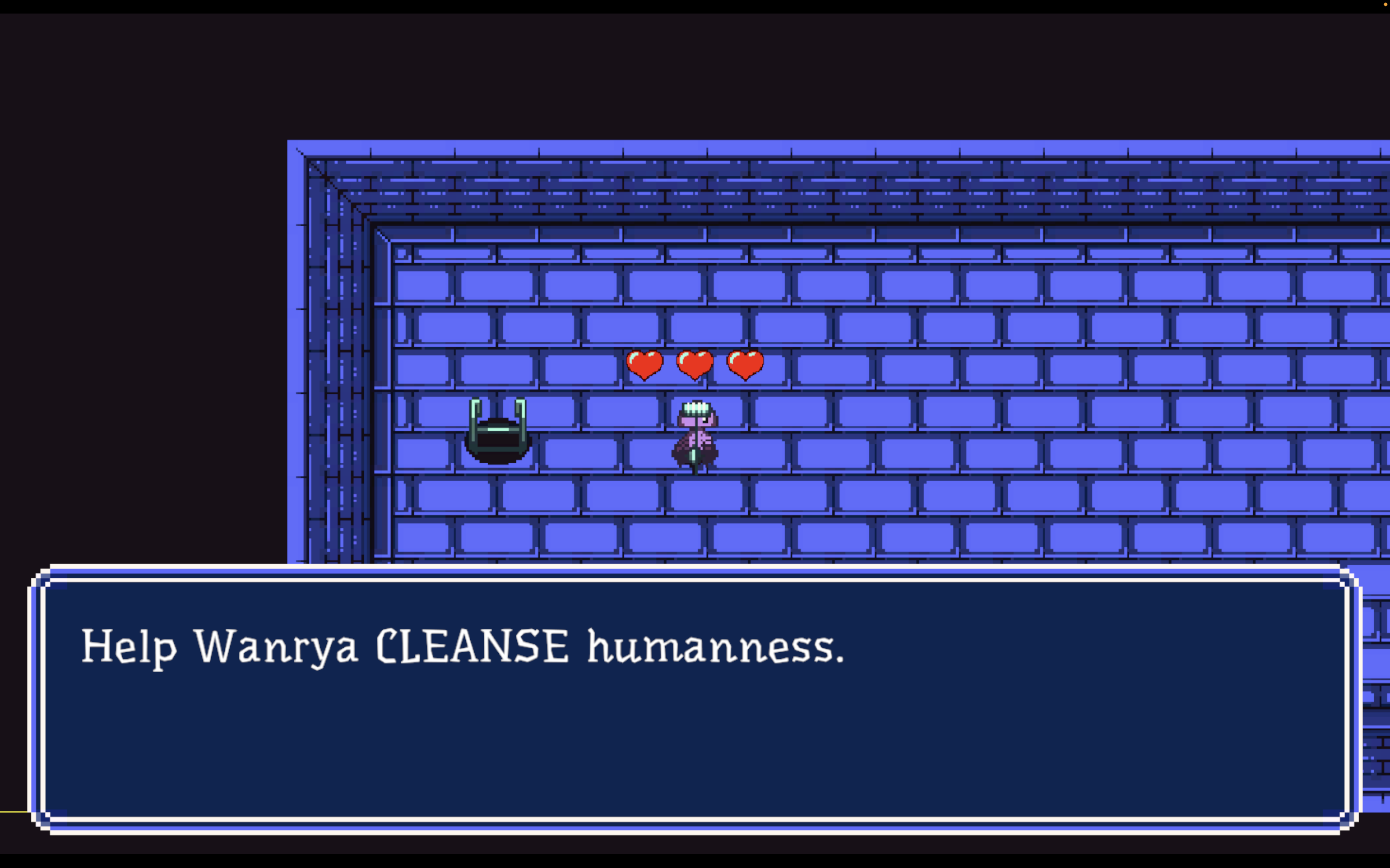 This being will ascend from its home to the sewage system of a ruined old city, and will continue its journey to the surface. For that, it'll have to survive the traps of a beneficent sect that wants to stop them. And, of course, cleanse the human trace which could disgust its Master.